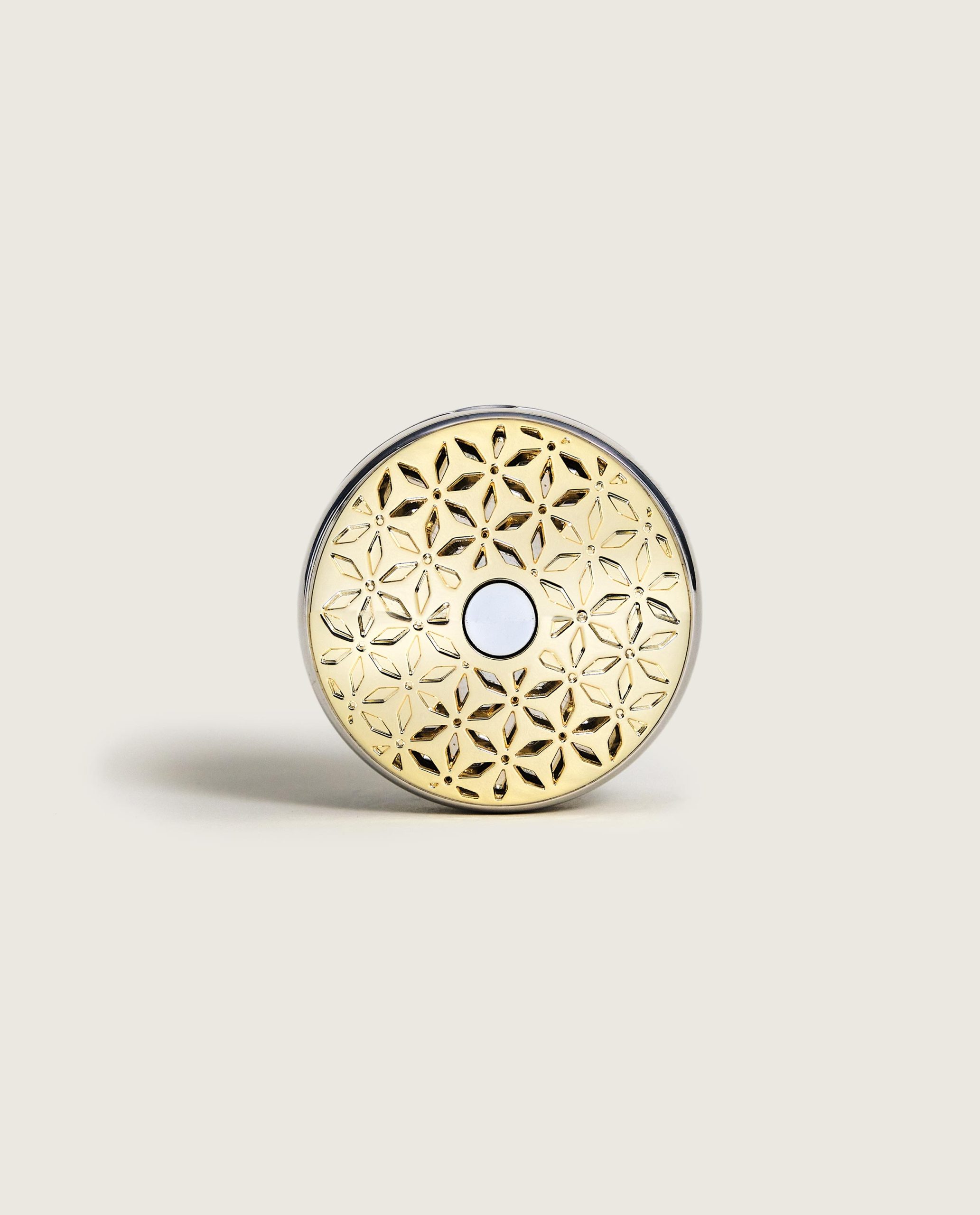 Det här är en komplett bildoft med en fälg / behållare i metall som man sätter i bilens fläkt. Den levereras med doften Vanilla Magnificent. Denna modellen kan ställas in hur mycket doft man vill ha genom att ställa luftflödet.